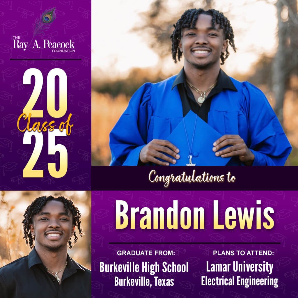 Founded in Burkeville, Texas, the Ray A. Peacock Memorial Scholarship Fund was established to honor the memory of Ray Anthony Peacock, an exceptional student of Burkeville High School’s Class of 1977. Ray was the first in his family to attend college, pursuing his dreams at Lamar University in Beaumont, Texas. Following his untimely passing, Ray’s parents, Cecil and Theresa Peacock, founded the scholarship fund to commemorate their son’s outstanding academic achievements and community work.