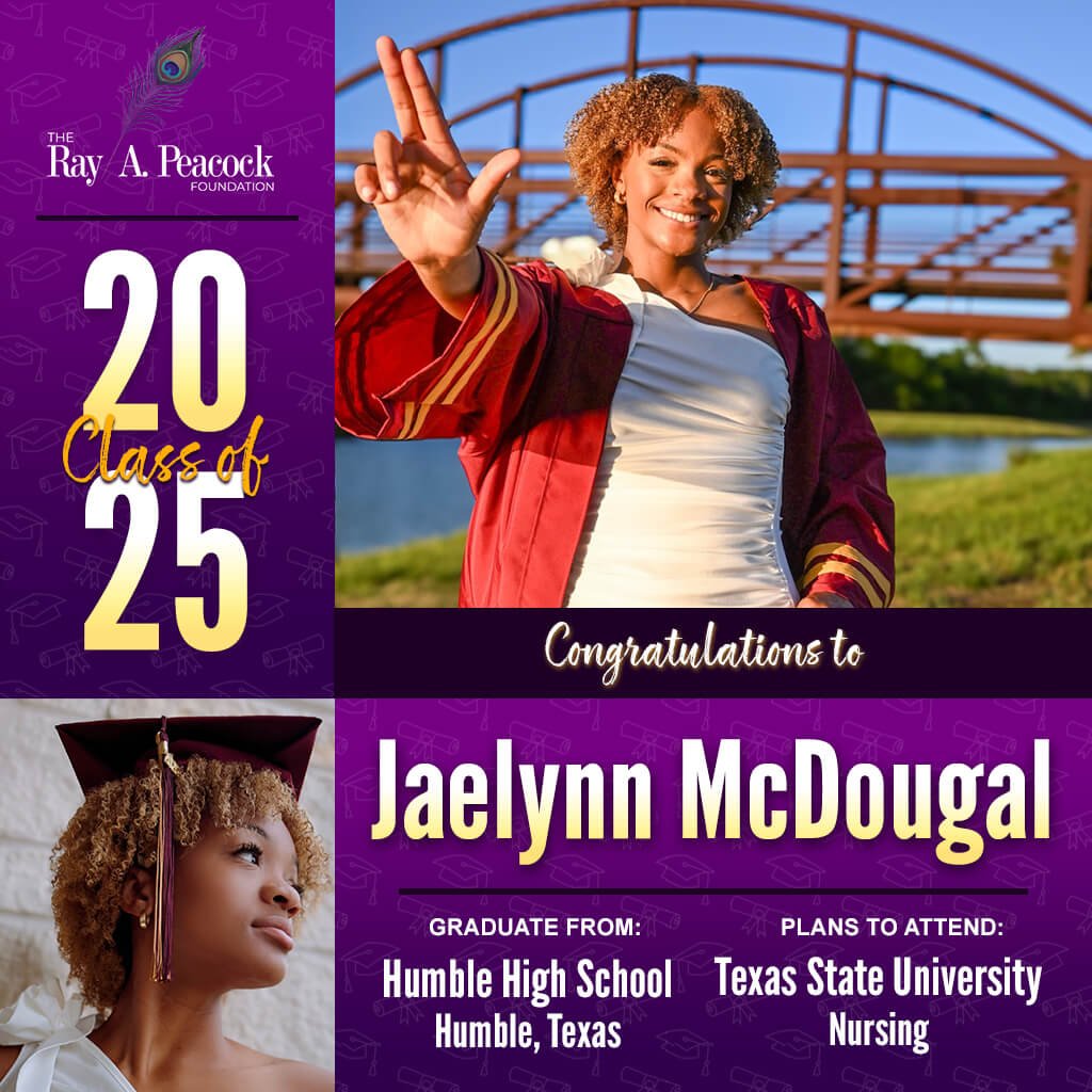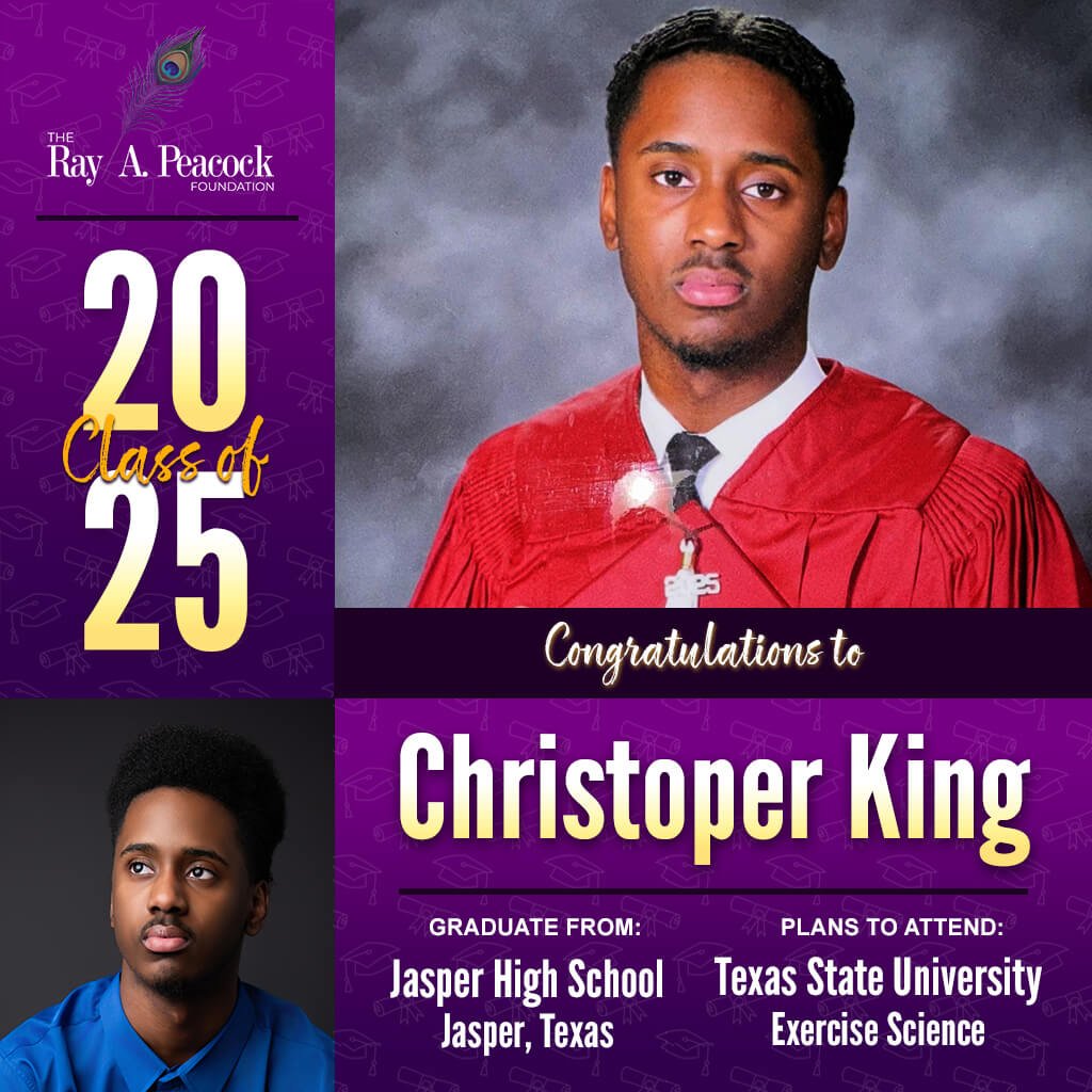 The Ray A. Peacock Foundation is a 501C (3) non-profit organization which awards achievement-based scholarships to graduating high school seniors in Texas. Scholarship awards are based on demonstrated academic excellence and commitment to serving their community.